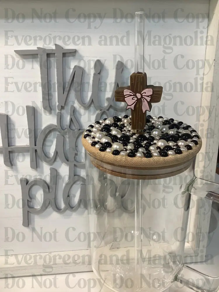 Cross with Pink Bow Straw Topper 10mm